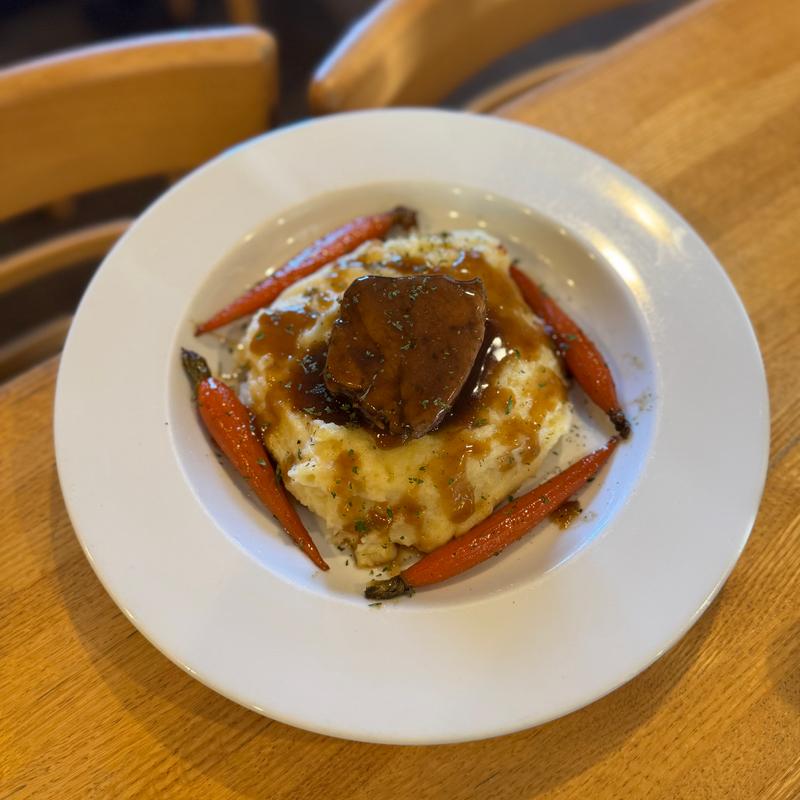 *Friday and Saturday only* Braised short rib served over mashed potatoes with maple bourbon glazed carrots.
