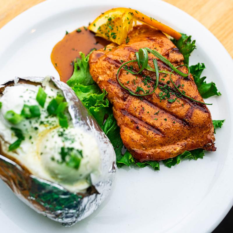 (2) 6oz. chicken breasts, grilled, served with your choice of side | Try it Blackened or Bourbon Glazed +$3.00
